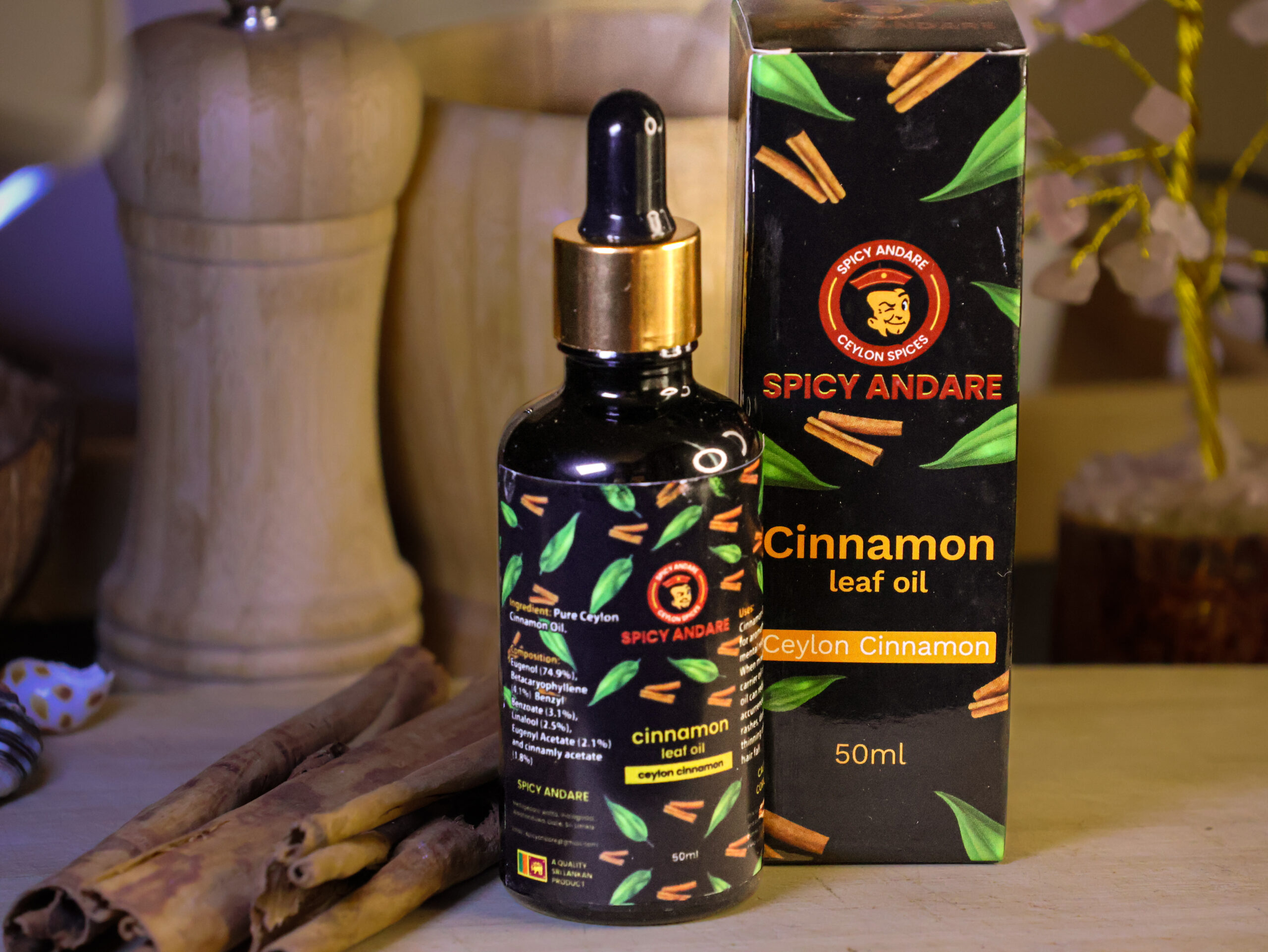Experience the warm, spicy aroma of pure Cinnamon Leaf Oil. Extracted from the finest cinnamon leaves, this 50ml bottle is perfect for aromatherapy, natural remedies, and DIY skincare. Its soothing properties help relieve stress, while its antimicrobial benefits make it a great addition to homemade cleaners. Add a few drops to your diffuser for a cozy, inviting atmosphere at home.